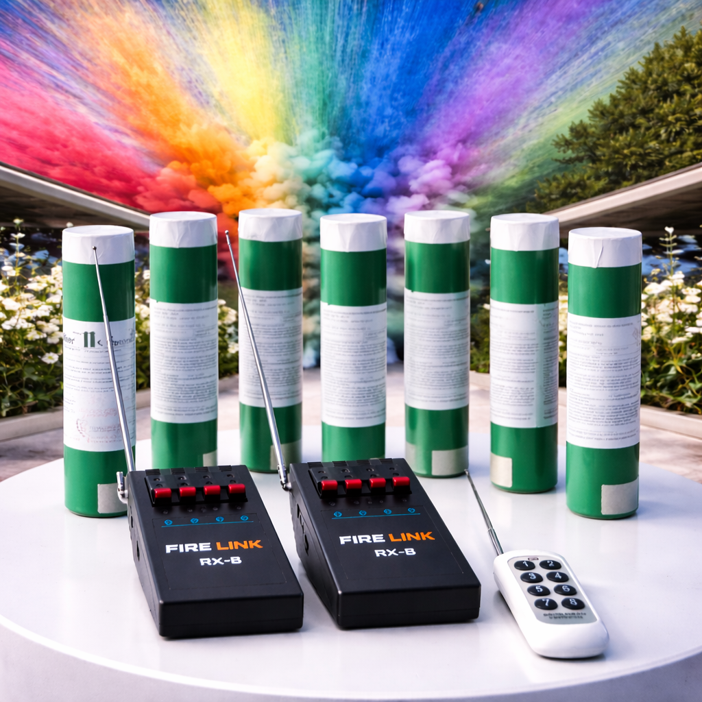 | Pack Completo ou Só Fumos | Fumos + Maquina de disparo á distancia FIRELINK + bases, Apenas fumos |