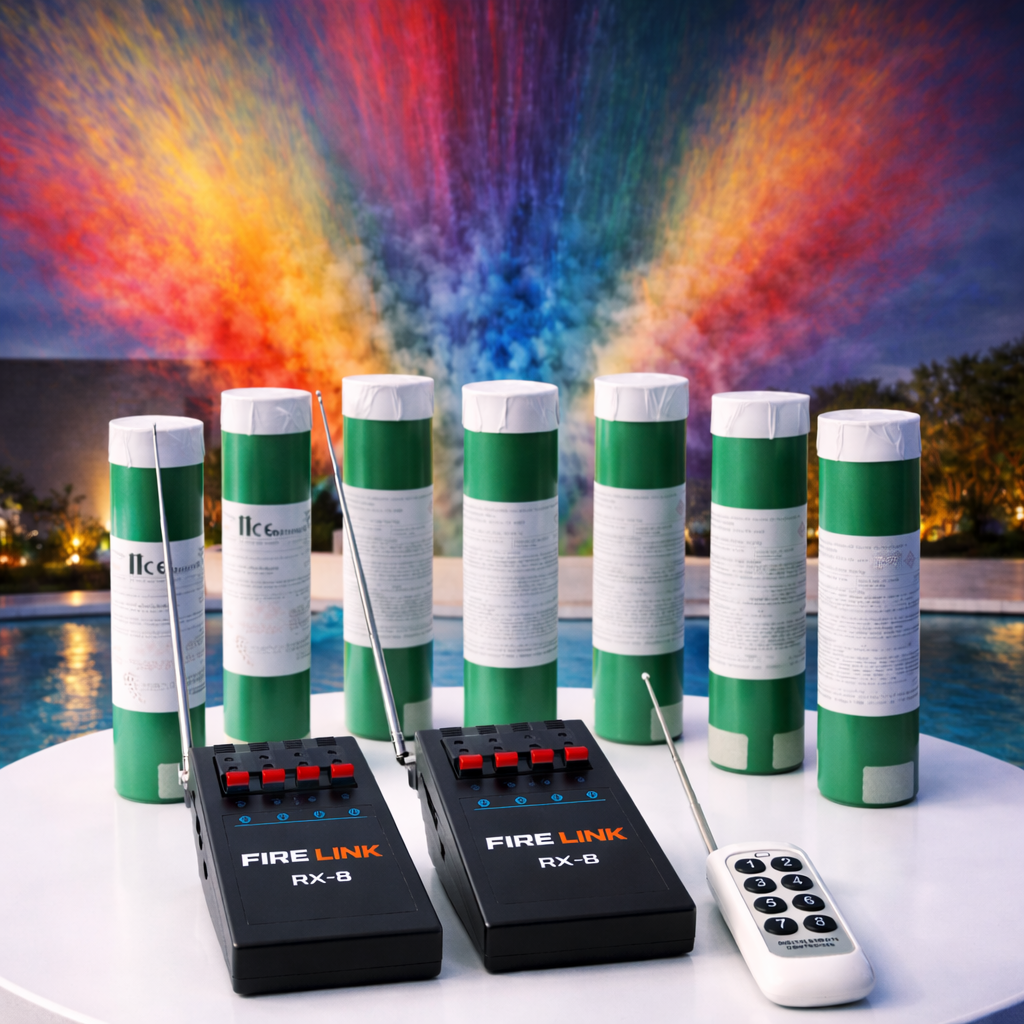 | Pack Completo ou Só Fumos | Fumos + Maquina de disparo á distancia FIRELINK + bases, Apenas fumos |